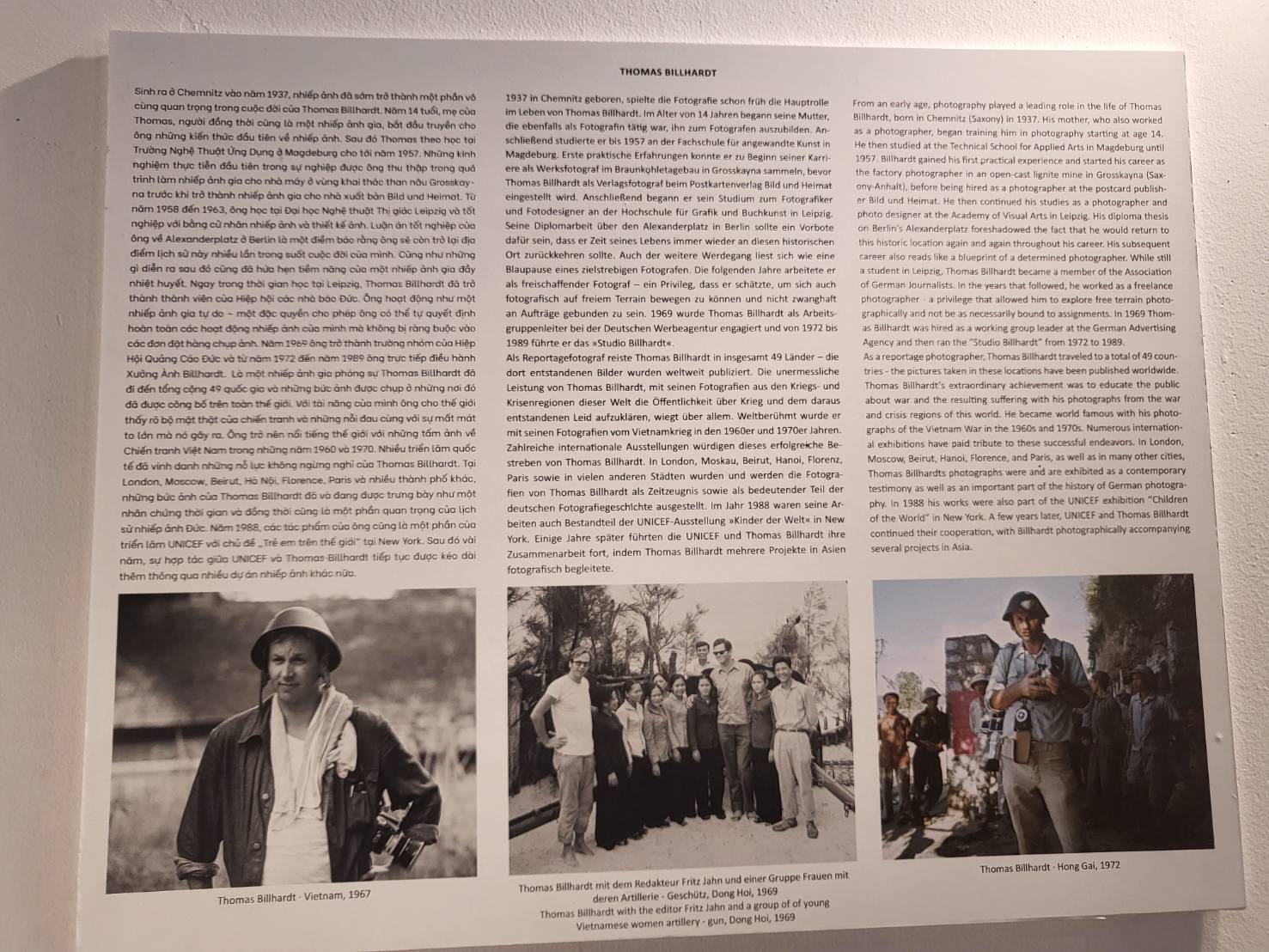 Thomas Billhardt was born in 1937 in Chemnitz, Germany. He is recognized as one of the outstanding documentary photographers of the German Democratic Republic era, and he is also one of the first photo-journalists documented the destruction of Vietnam war by cameras. The photos taken by him have played an important part in showing the world the horrors of Vietnam war (in the period of 1965 – 1975), especially through the faces of children he photographed.